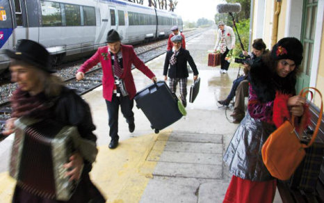 south of France visit regularly a workshop of improvisation theatre which is directed by Annie Rhode, member of the Tout Samba'L Company. They play some queer travellers waiting for the train.